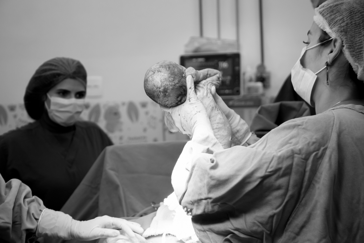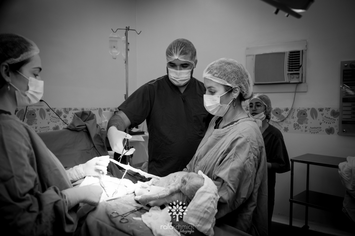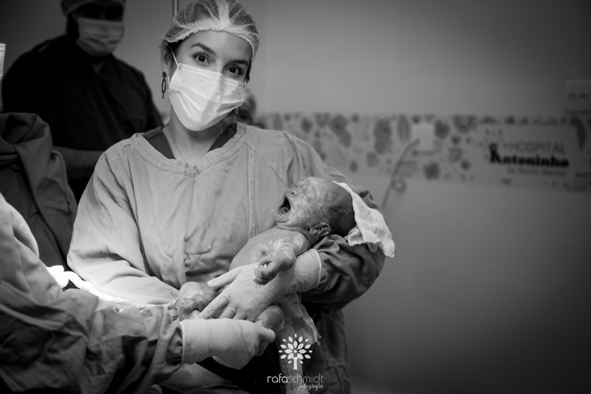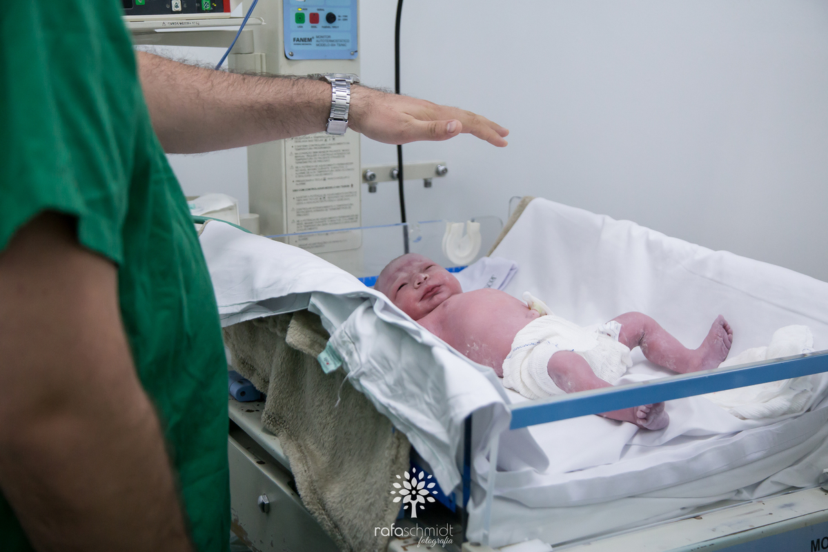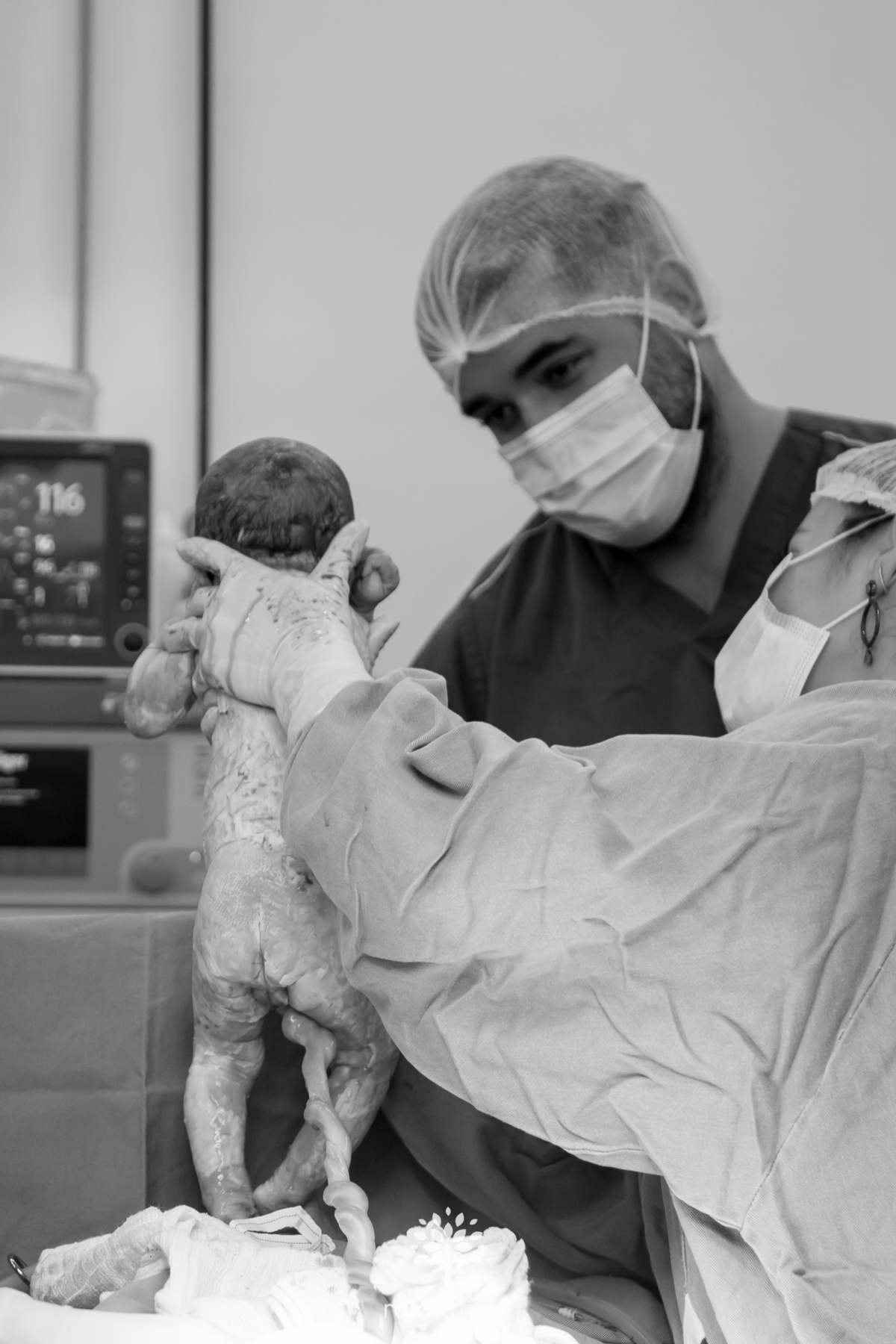 A mamãe vinha apresentando picos de pressão alta e então, com 39 semanas, iniciou-se as tentativas de indução que não evoluíram, por isso partiram para a cesárea.