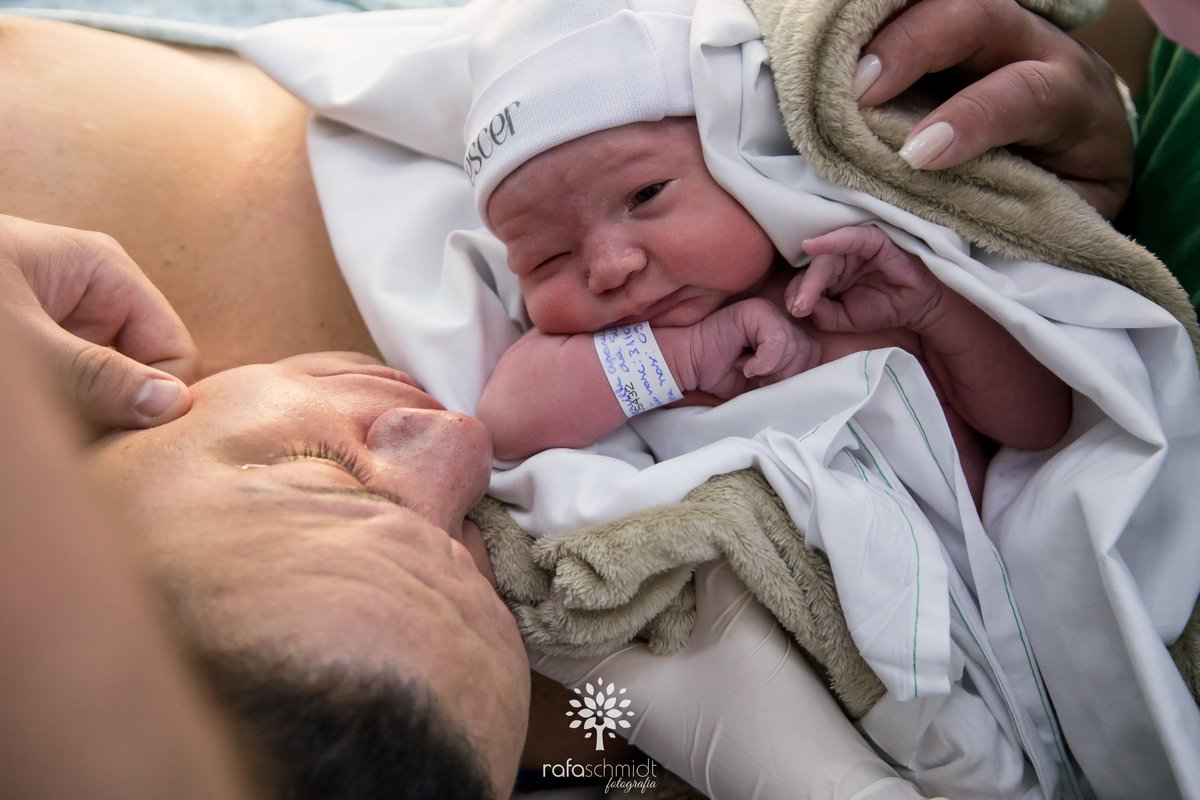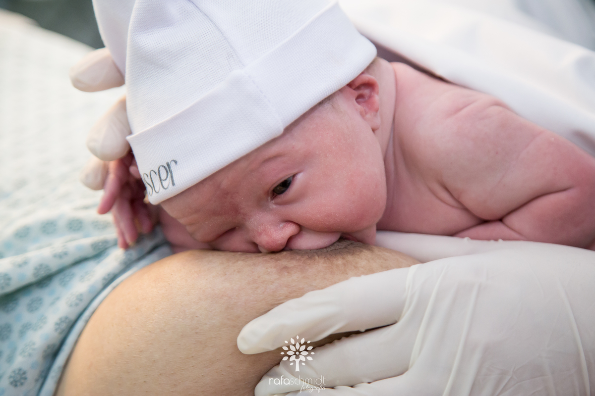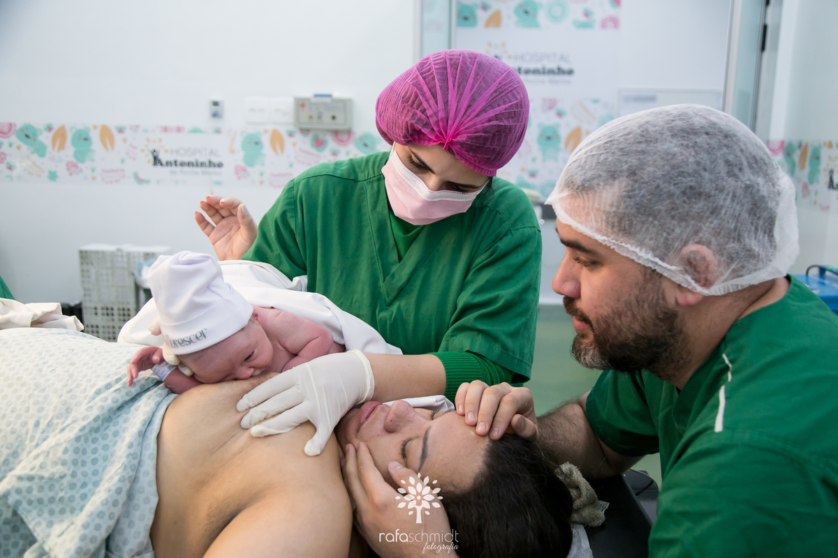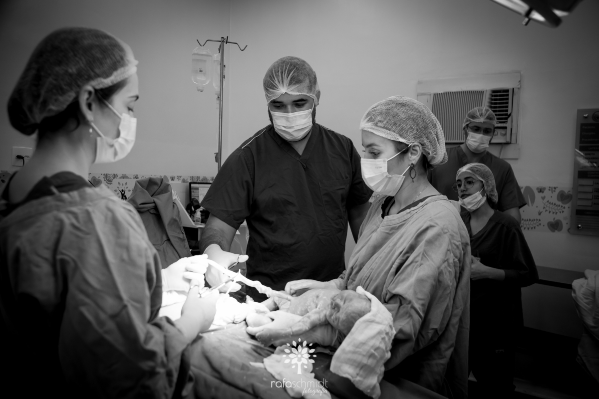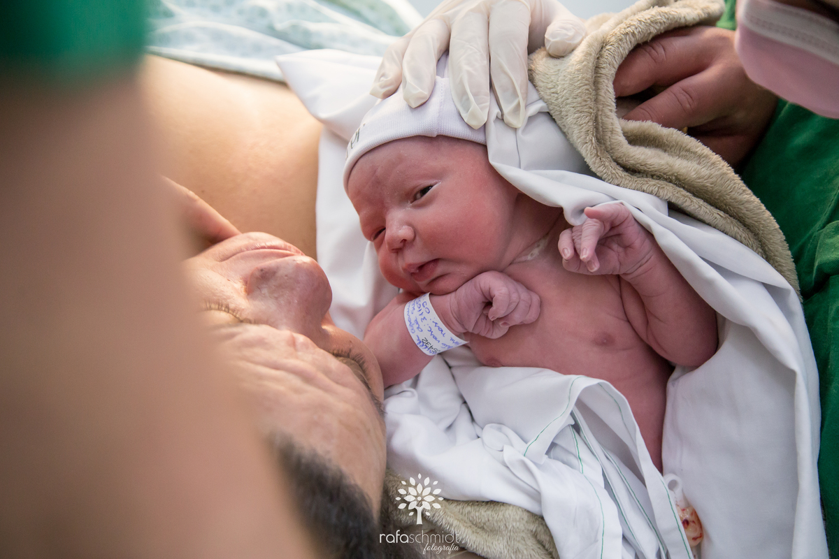 A mamãe vinha apresentando picos de pressão alta e então, com 39 semanas, iniciou-se as tentativas de indução que não evoluíram, por isso partiram para a cesárea.
