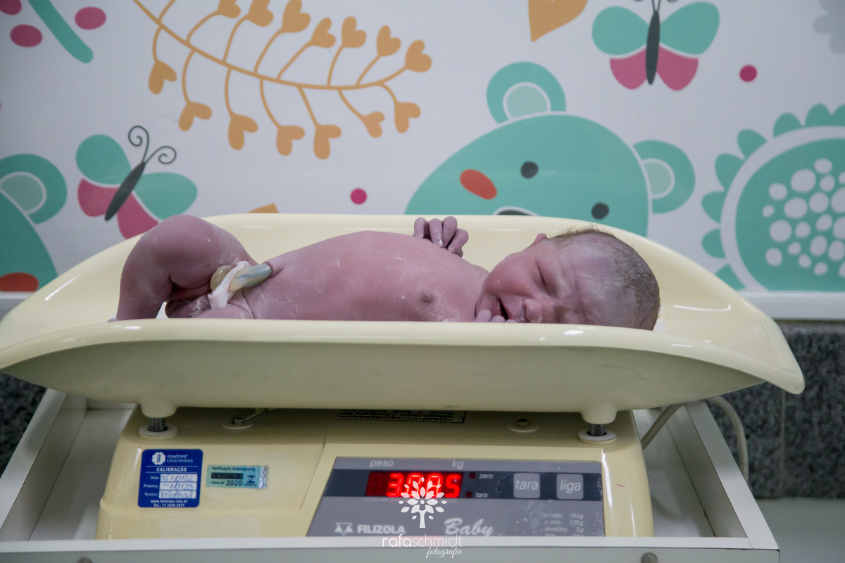 A chegada da Isabela aconteceu via parto cesárea, após 4 dias de tentativa de indução ao parto normal.
