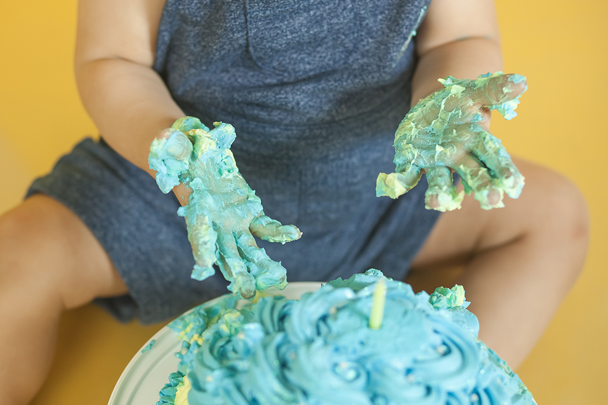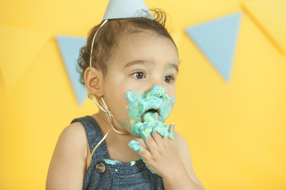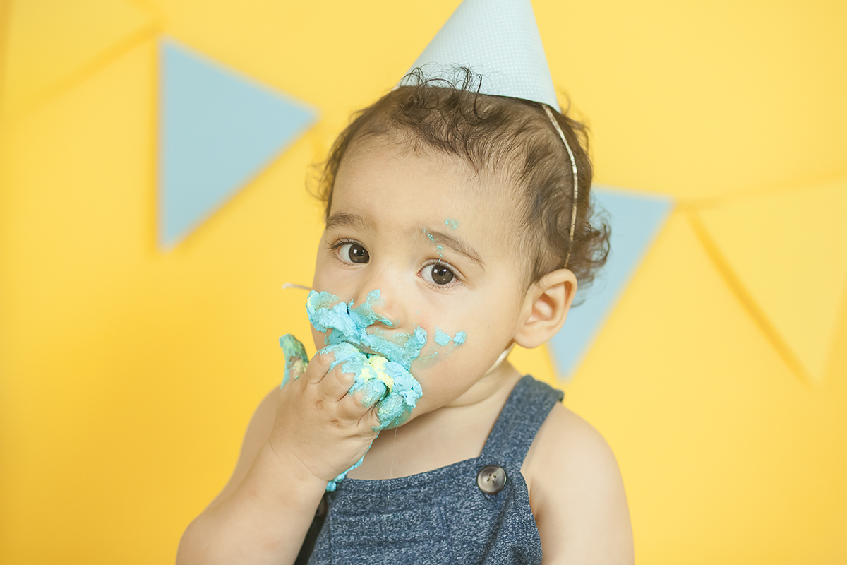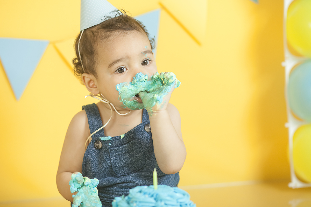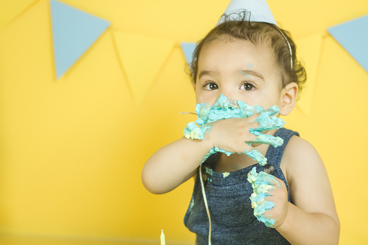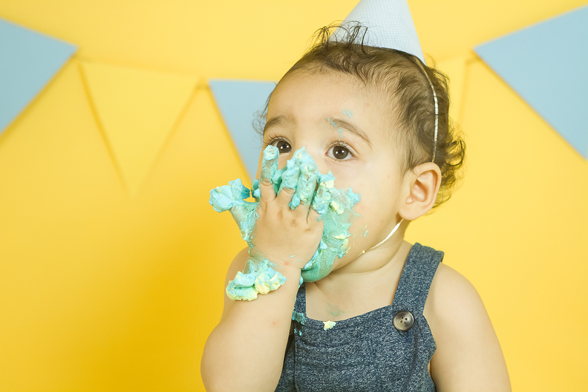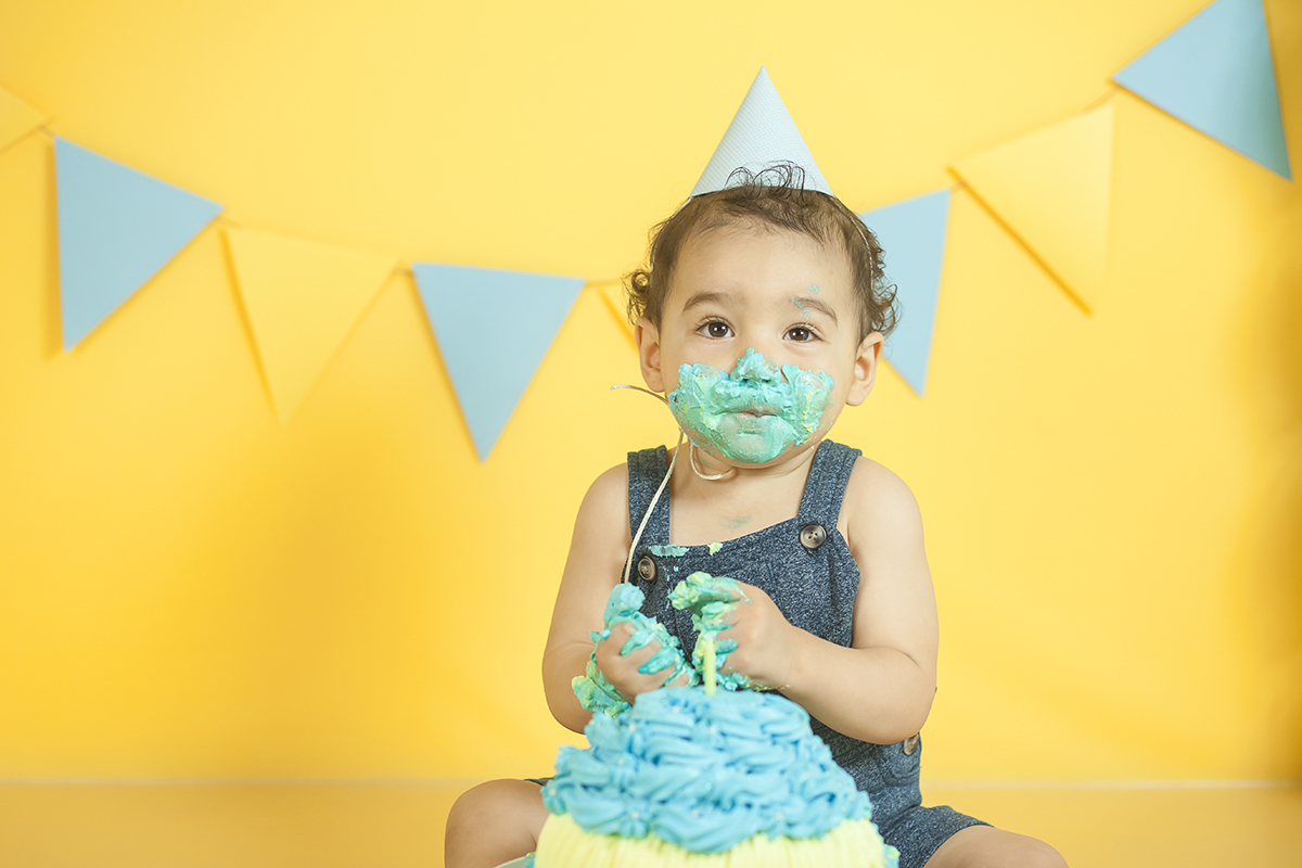 O Murilo se divertiu muito no seu ensaio Smash the cake! Ele se jogou na brincadeira e curtiu de verdade conhecer as texturas e gostos de um bolo de aniversario!